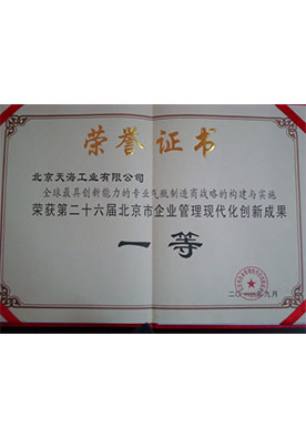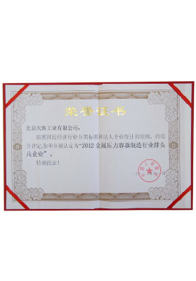 天海工業(yè)一直秉承“誠信、敬業(yè)、學(xué)習(xí)、創(chuàng)新,志在一流”的企業(yè)精神,以安全可靠的產(chǎn)品和優(yōu)質(zhì)的服務(wù),樹立了良好的企業(yè)形象,先后榮獲中國百強(qiáng)企業(yè)、北京市十佳外商投資企業(yè)、北京市高新技術(shù)企業(yè),中國金屬壓力容器制造行業(yè)排頭兵企業(yè)和全國“五一”勞動(dòng)獎(jiǎng)狀、“北京市專精特新小巨人企業(yè)”、“國家級(jí)專精特新小巨人企業(yè)”等榮譽(yù)稱號(hào)。